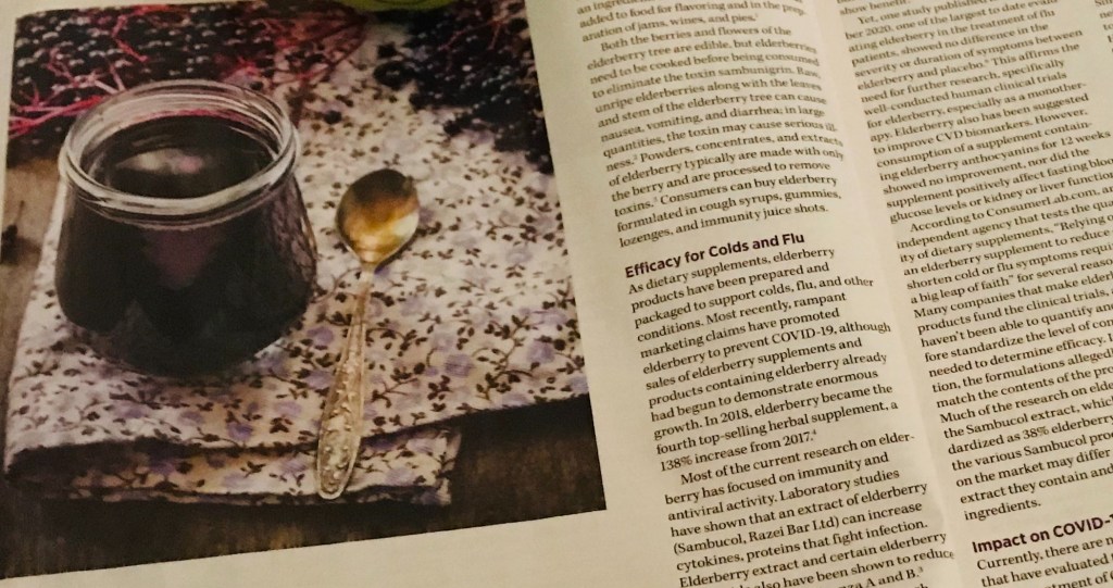 One thing I particularly appreciate about the article is that it reviewed published studies on elderberry, as do many articles published by Today’s Dietitian. As you know, there is a ton of information on nutrition, some that are evidence-based and others that make you wonder if it’s too good to be (if it does, then it probably is too good to be true). Knowing who and what to trust can be challenging. It’s important to find credible sources and as a clinician, I’m committed to providing information that’s based on science, not fads or quackery. If you have questions on this, send me a message.
